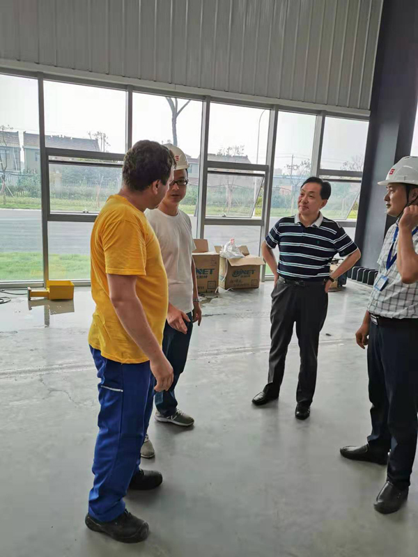 公司总经理仇勇、副总经理李营询问安装进度问题