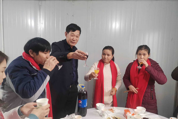 开饭前,董事长贾干春为留守员工送上新年的祝福,并对他们春节期间坚守工作岗位表示感谢,要求管理人员不仅服务好员工节日生产生活,更要关心关爱留盐过年员工,让员工过一个欢乐祥和的新春佳节。