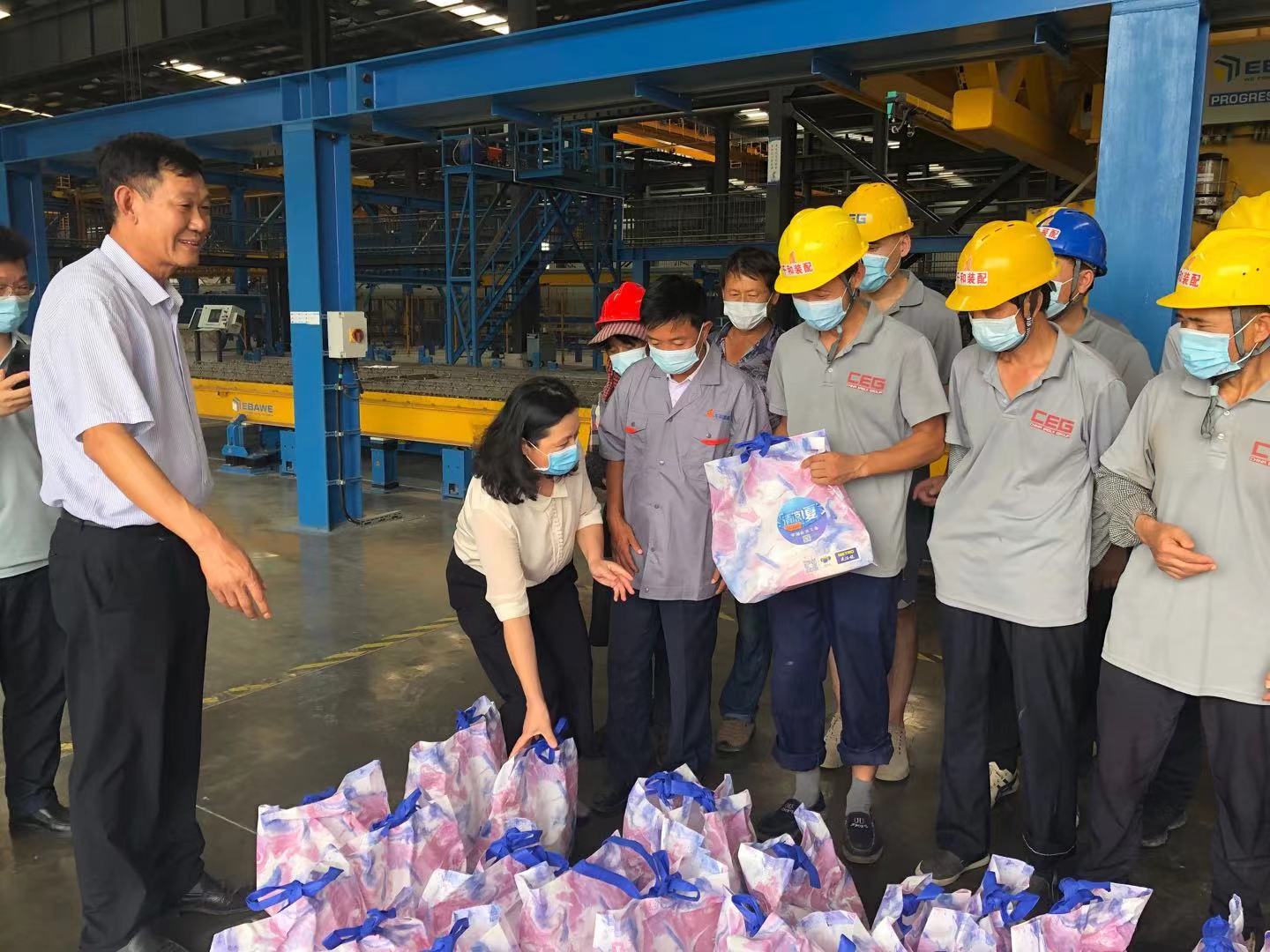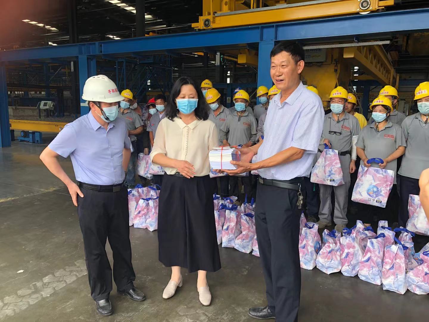 网站当前位置:网站首页 >新闻中心 > 公司新闻8月10日下午,亭湖区总工会工作人员到我公司开展夏季安康“三送”活动,受到了企业职工的热烈欢迎。亭湖区总工会主席陈雪菁、新洋经济区组织办马坚主任一行向奋战在高温一线的工作者致以亲切慰问,并送上了夏季慰问“清凉礼包”。