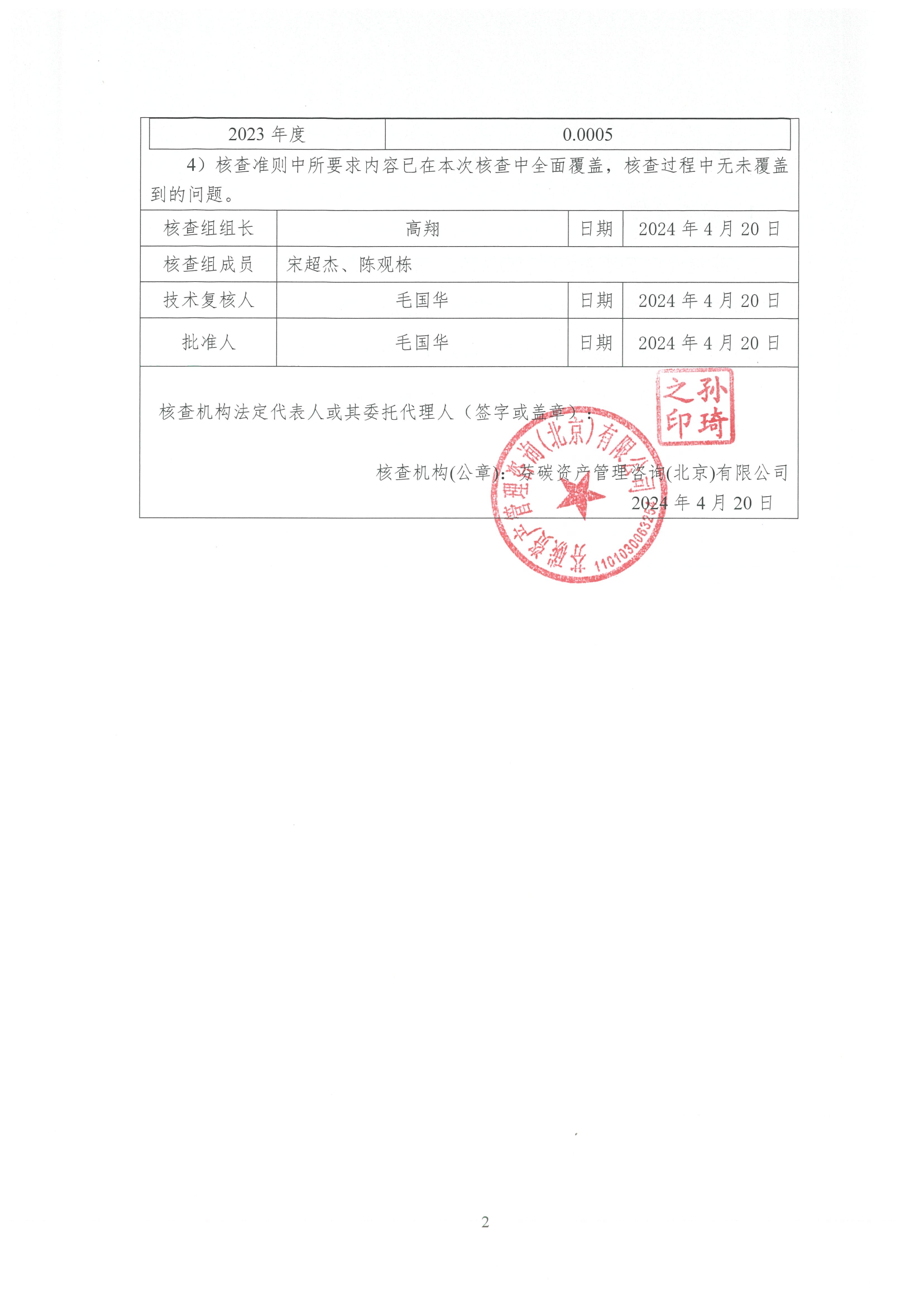 碳核查报告-2023年度