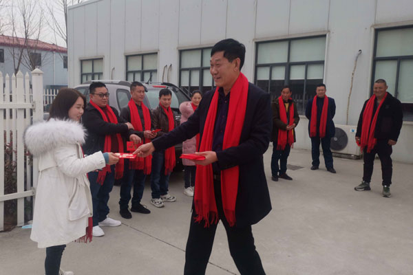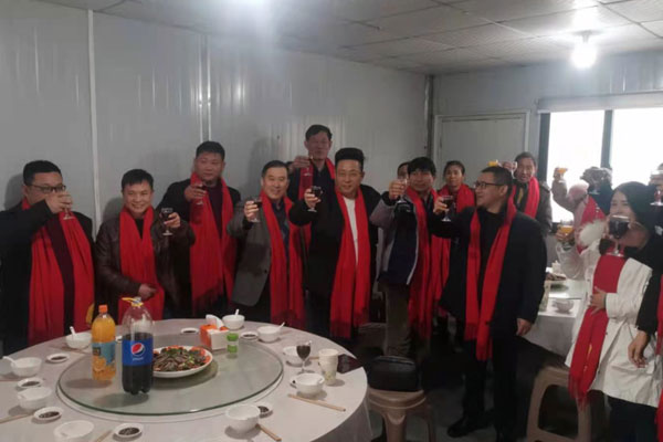 就地过年,年味不减。领导们来到现场,给所有在场的员工发放红围巾,送上过年红包,向他们致以节日的祝福。大家欢聚一堂,喜迎新年。